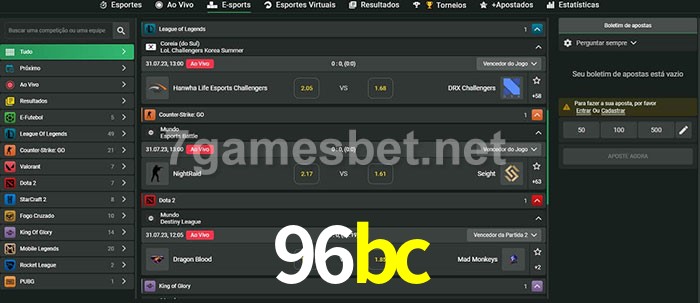 O 96bc oferece uma grande seleção de opções de apostas em e-sports com probabilidades competitivas